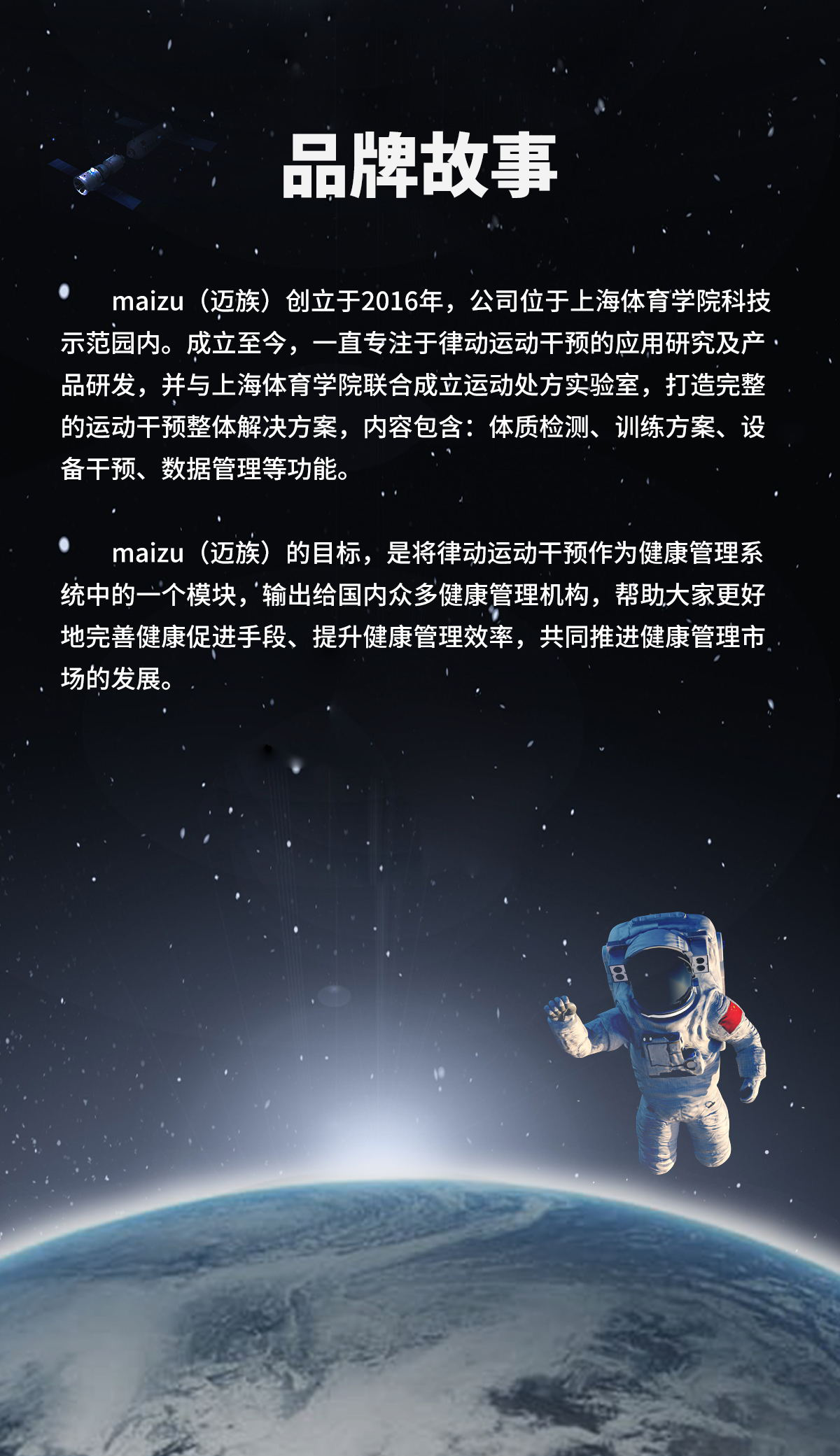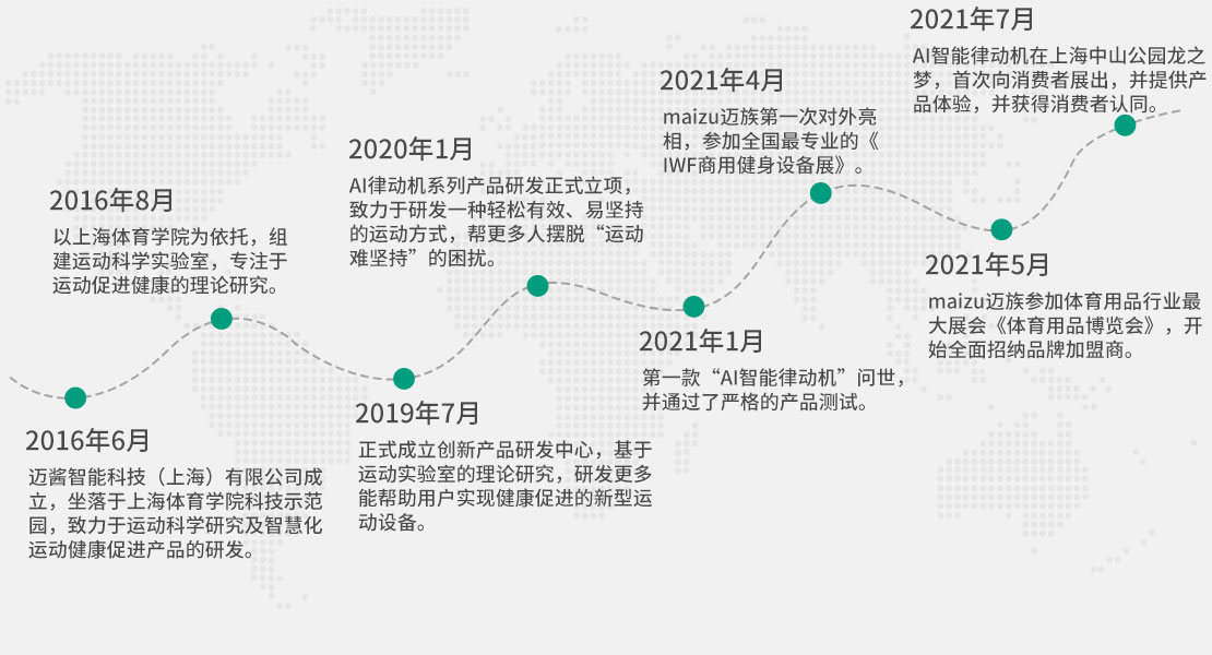 maizu迈族成立于2016年,专注于智慧健身终端解决方案,及产品研发,数据分析,软件开发,课程定制,运动科学研究于一体。致力于让实现健康变得简单,通过运动的方式促进人们的身体健康,满足一亿人的运动健康需求。