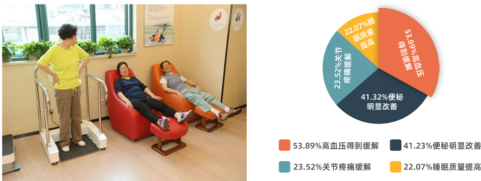 研究成果转化为运动健康促进适宜技术在乐活空间和白杏康健应用,跟踪将近1000位老年人、残障人士,高血压患者得到缓解或控制的占53.89%;41.32%便秘患者得到明显改善;23.52%的老年人骨关节疼痛缓解;22.07%的老年人睡眠质量提高;52位脑卒中偏瘫患者腿部肌力增加、步态改善、步行能力提高;3位帕金森患者,手部震颤症状减轻,能做简单的手部保健操;11位因脑卒中、脊柱损伤等导致坐轮椅和拄拐行走的残障人士通过规律运动6至12个月后能从轮椅上站起来,能够脱拐独立行走